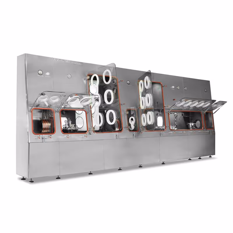 These modular isolators can be configured around your existing equipment or built as integrated units. Options typically include safe-change HEPA/ULPA filters, interlocked transfer ports (RTP, alpha/beta valves), CIP/WIP capability, automated pressure testing, and flexible glove port layouts.